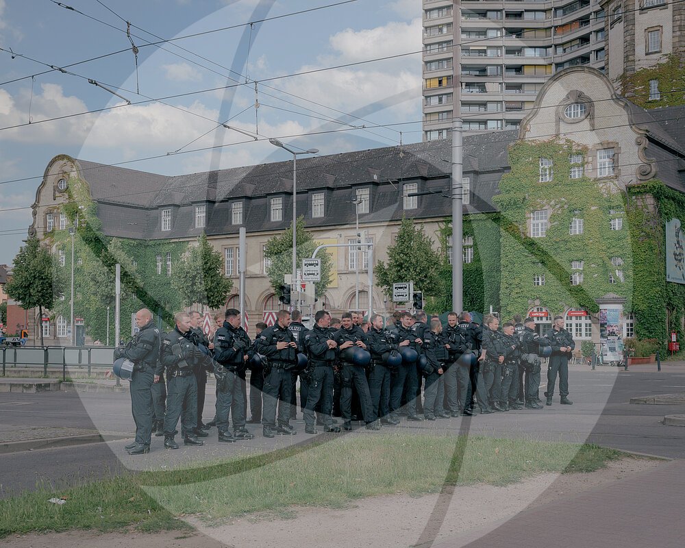 Die Polizei schützt die Demonstration „Mannheim steht zusammen - für Demokratie und Vielfalt“ in Mannheim, Deutschland, am 7. Juni 2024.