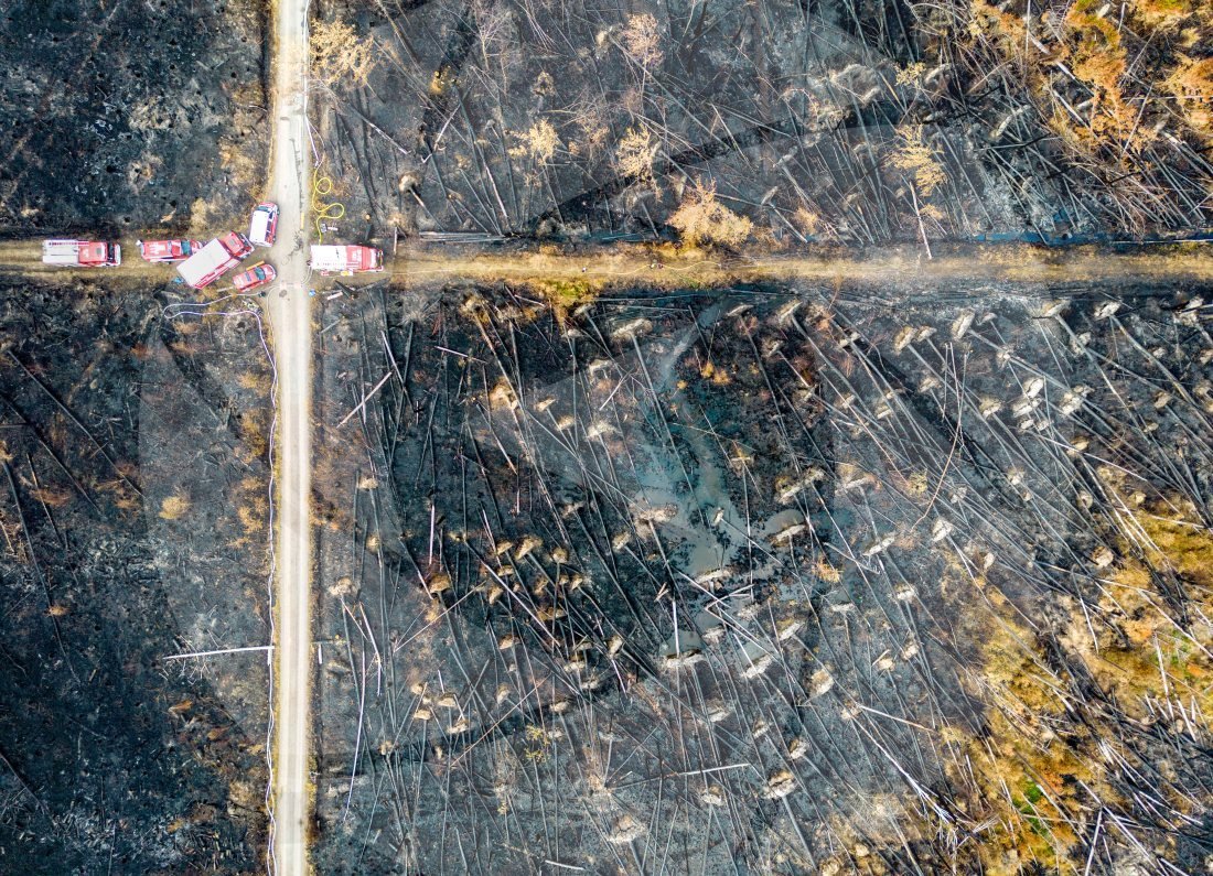Inmitten einer niedergebrannten Waldfläche löschen Feuerwehrleute letzte Glutnester. Nach wochenlanger Trockenheit war es in ganz Deutschland zu Waldbränden gekommen. Insgesamt... MEHR