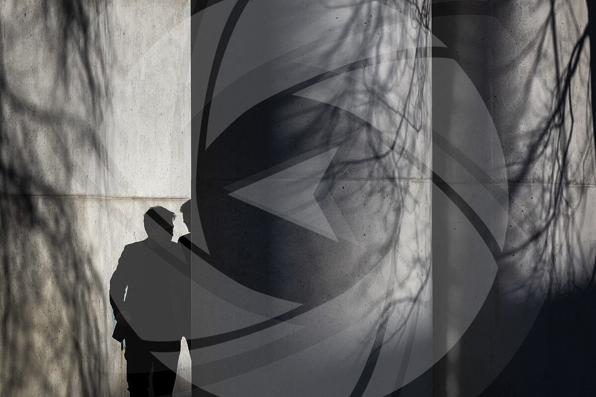 Die Silhouetten von Wirtschaftsminister Habeck (L) und Finanzminister Lindner (R) zeichnen sich ab im Garten des Kanzleramtes waehrend der Regierungsklausur der neuen Bundesregierung.