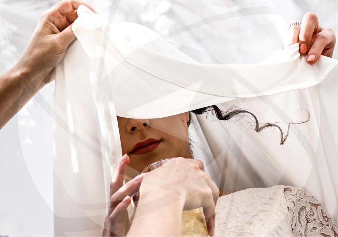 Braut Elisheva Chay, Flüchtling aus Odessa, trinkt während der jüdischen Trauung
