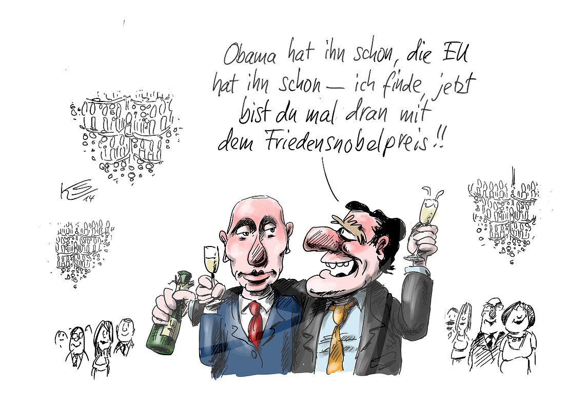 Obama hat ihn schon, die EU hat ihn schon - ich finde, jetzt bis du mal dran mit dem Friedensnobelpreis!