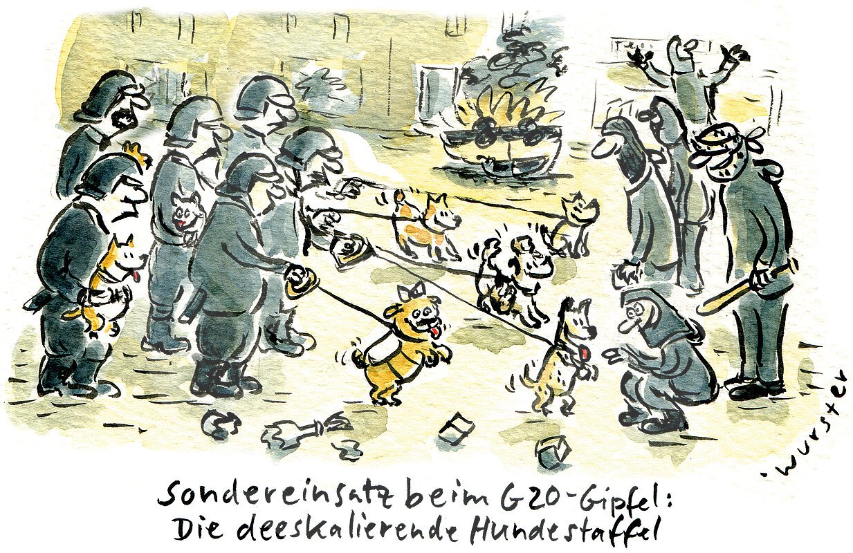 Sondereinsatz beim G20-Gipfel: Die deeskalierende Hundestaffel.
