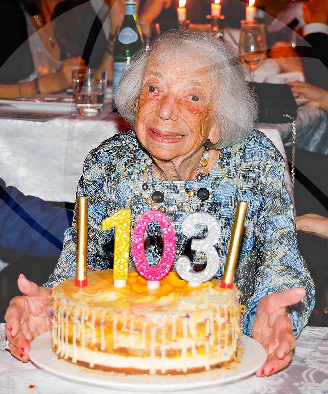 Geburtstagstorte für Margot Friedländer bei der Palazzo-Premiere "Unikate" im Spiegelpalastzelt Berlin.