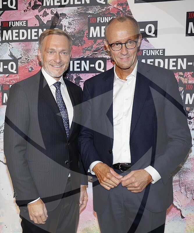 Christian Lindner MdB (Bundesminister der Finanzen, Friedrich Merz MdB beim Funke Medien-Q in der FOTOGRAFISKA in Berlin.