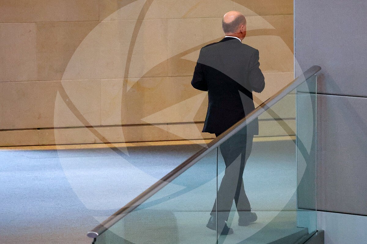 German Chancellor Olaf Scholz leaves the 2024 budget debate session of the German lower house of parliament, the Bundestag, during Alternative for Germany (AfD) party co-leader... MEHR