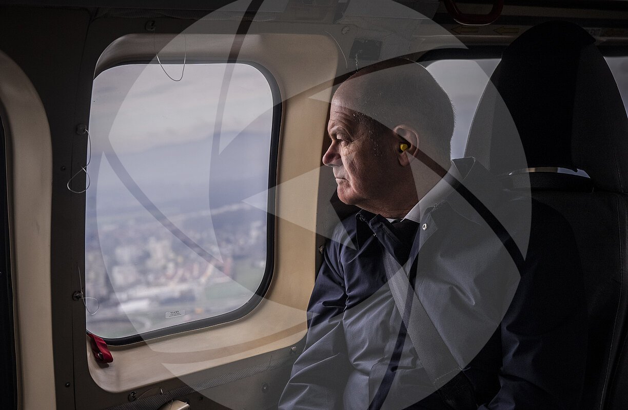 Bundeskanzler Olaf Scholz beim Anflug auf Freiburg