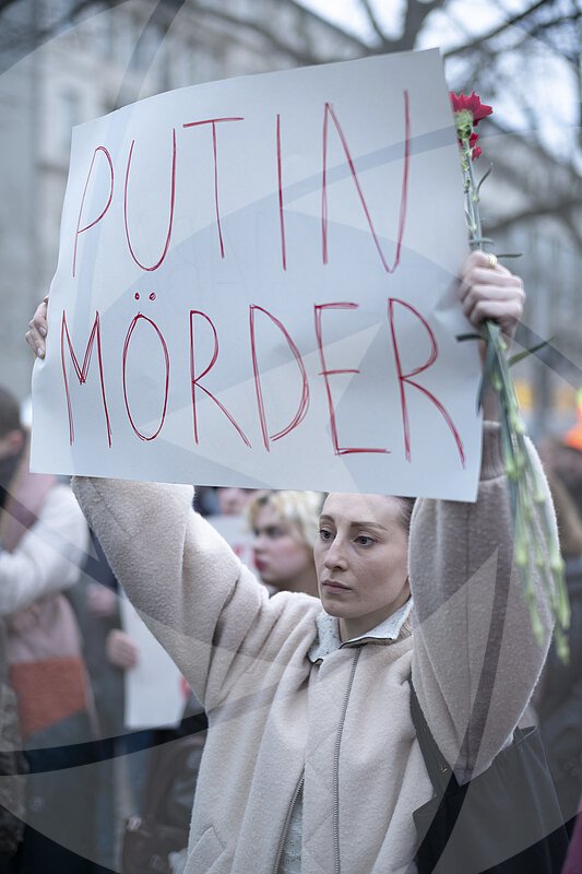 Protest und Trauerkundgebung vor der russischen Botschaft, nach bekanntwerden des Todes von Alexei Nawalny.