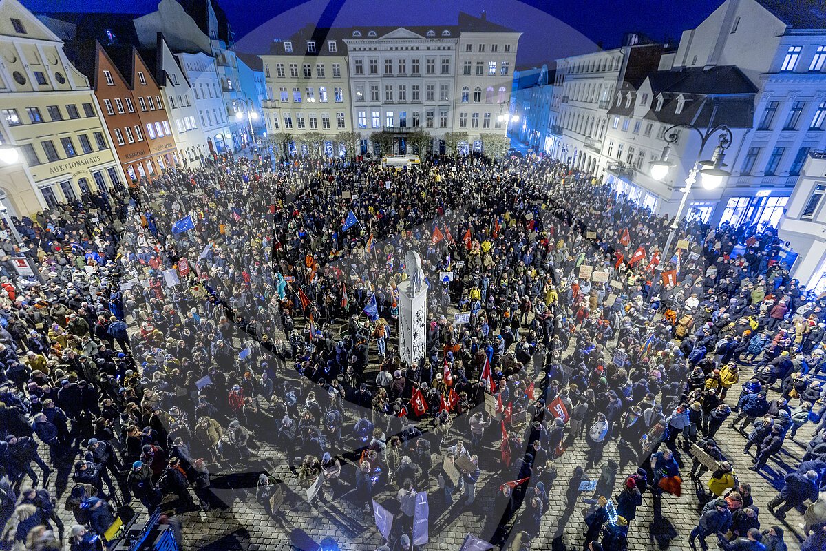 Teilnehmer einer Demonstration gegen Rechtsextremismus unter dem Motto «Nie wieder ist jetzt! - Gegen rechte Hetze und Deportationspläne» versammeln sich auf dem Marktplatz.
