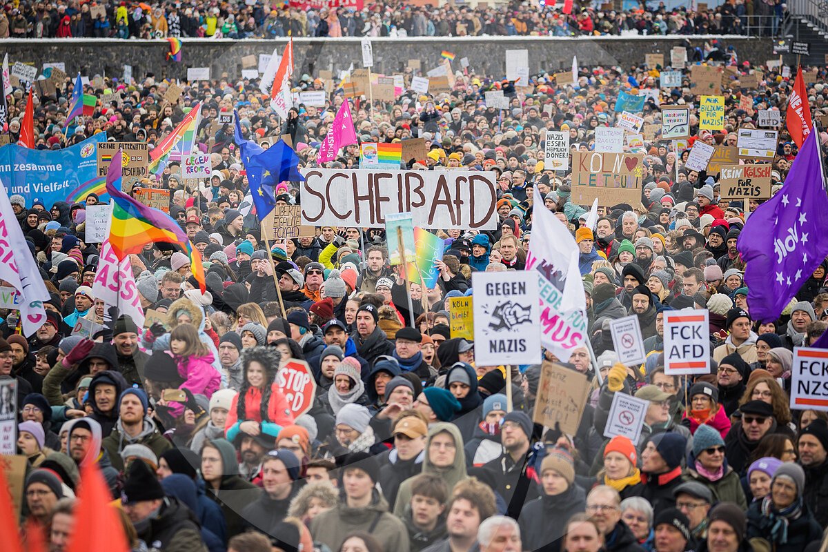 Rund 100.000 Menschen haben sich am Sonntag vor dem Reichstag zum Protest gegen die AfD und gegen Rechtsextremismus versammelt.