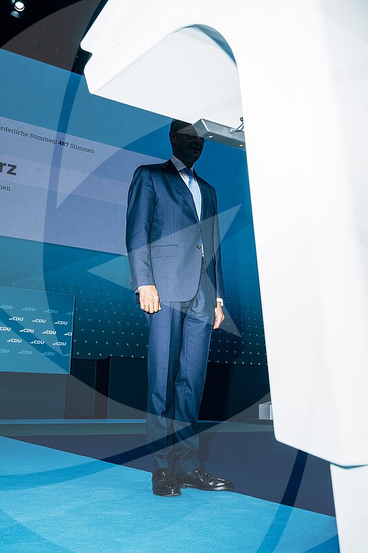 Friedrich Merz lässt sich nach seiner Wiederwahl als Parteivorsitzender auf dem Bundesparteitag feiern.