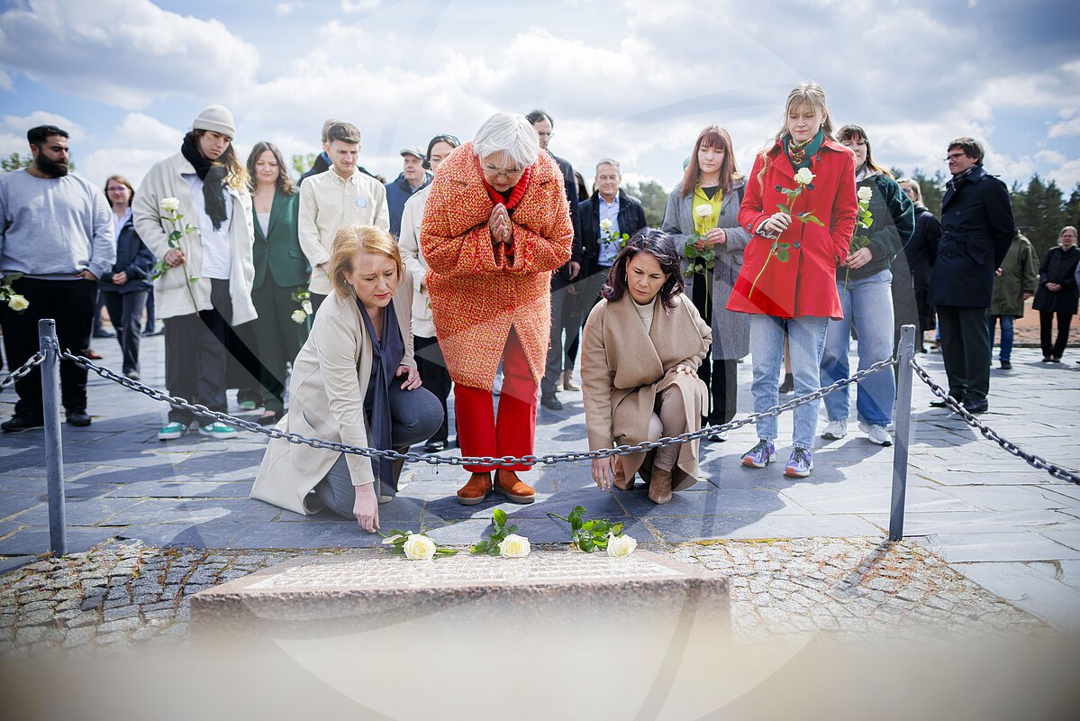 Lisa Paus, Claudia Roth und Annalena Baerbock legen an einem Gedenkstein der KZ Gedenkstätte Sachsenhausen anlässlich des Programms „Jugend erinnert“ Blumen nieder. Fotografiert... MEHR