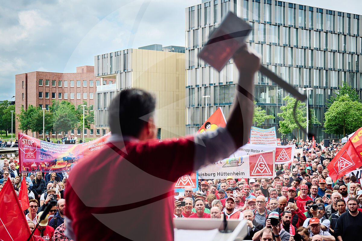Thyssenkrupp-Beschäftige demonstrieren: Konzernbetriebsratschef Tekin Nasikkol schwingt den Stahlhammer Die IG Metall hat aus Anlass einer Sitzung des Thyssenkrupp-Aufsichtsrats... MEHR