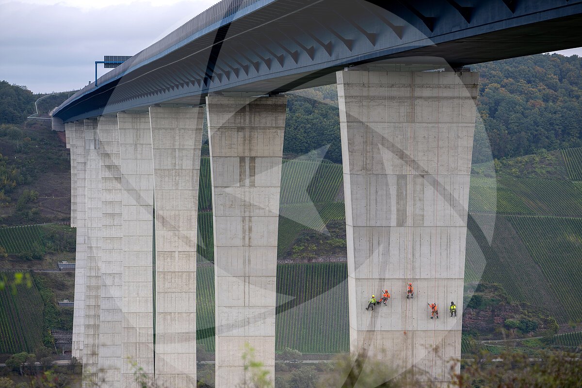 Industriekletterer haben sich an einem Brückenpfeiler der Hochmoselbrücke bei Zeltingen-Rachtig abgeseilt um Risse im Beton zu finden und zu dokumentieren. Jede Brücke in... MEHR