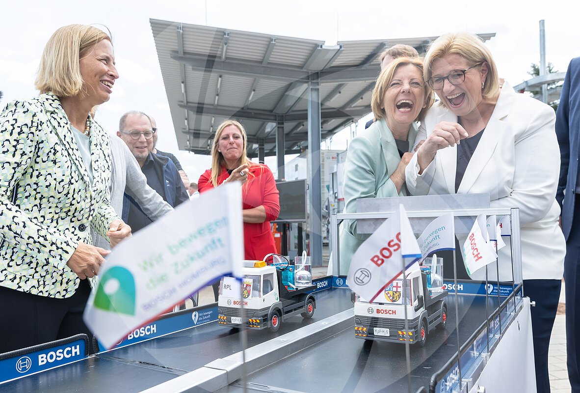 Die Ministerpräsidentin von Rheinland Pfalz Malu Dreyer (2.v.r.) und die saarländische Ministerpräsidentin Anke Rehlinger (SPD) (r.) amüsieren sich bei einem Wettrennen mit... MEHR