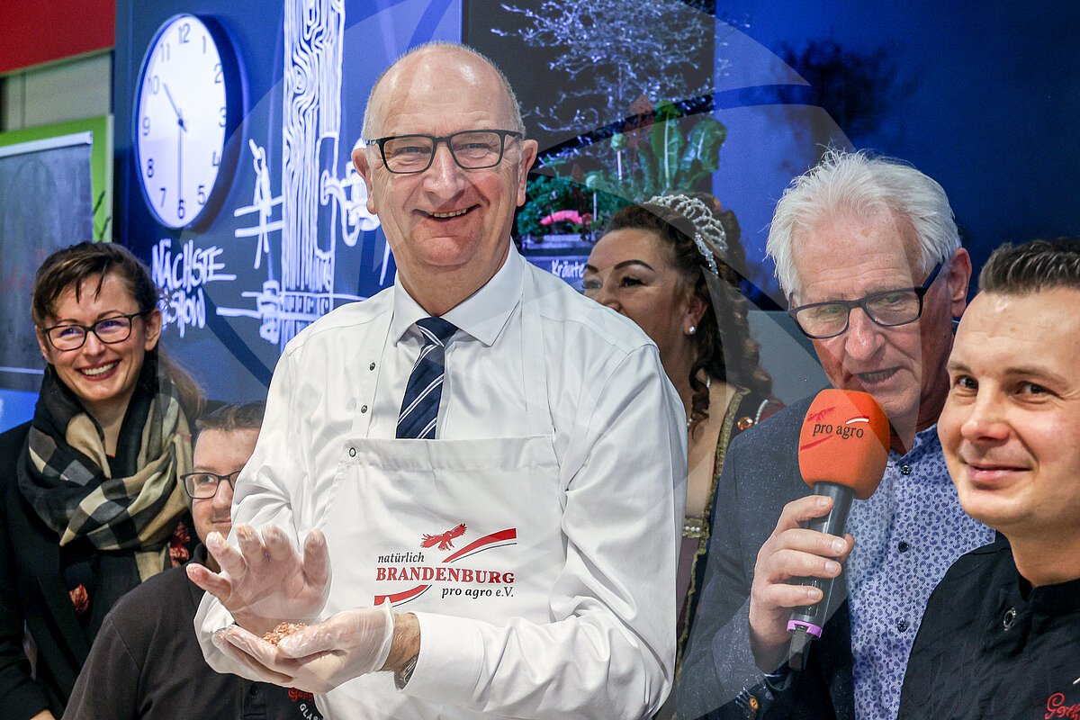 Dietmar Woidke, Ministerpräsident Brandenburg auf der Internationalen Grünen Woche - Kochstudio - bei der Zubereitung von Wild-Frikadellen