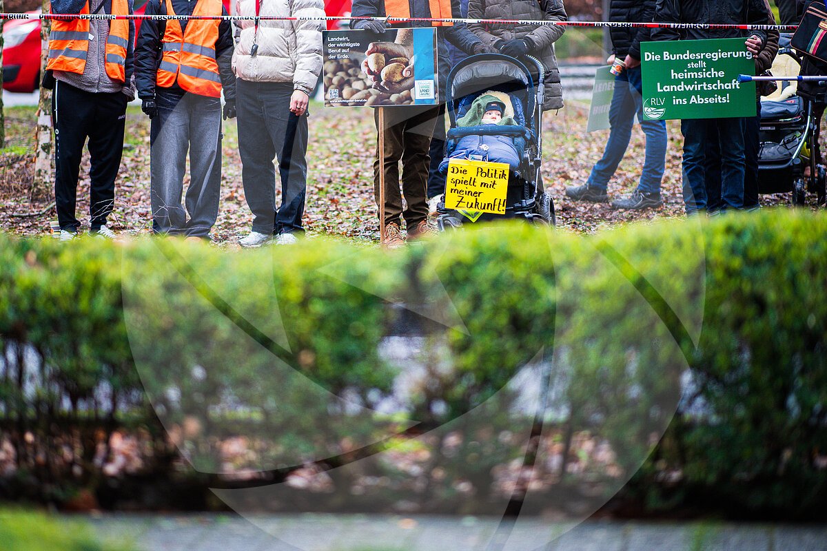 Landwirte demonstrieren vor dem FDP-Neujahrsempfang am Maritim Hotel - ebenfalls mit im Anhang: Babys im Kinderwagen.