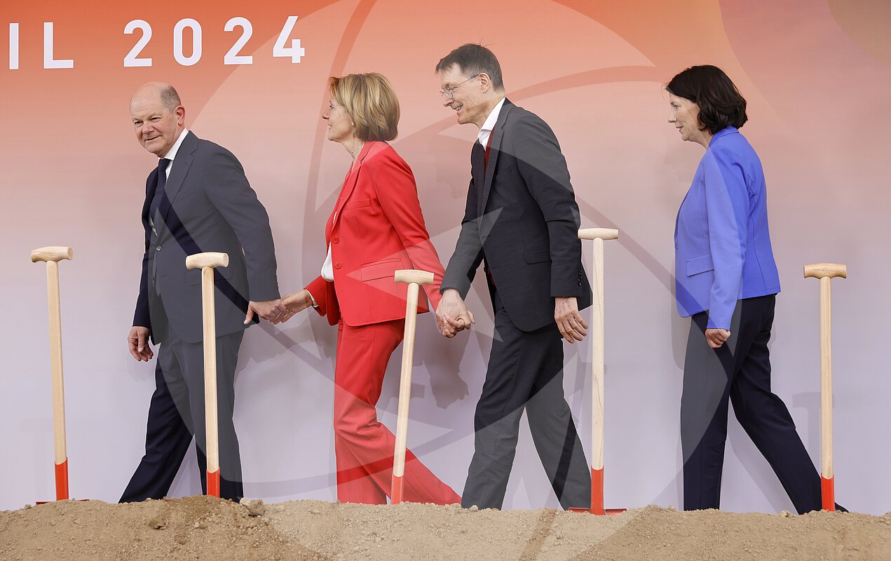 Bundeskanzler Olaf Scholz, die rheinland-pfälzische Ministerpräsidentin Malu Dreyer, Bundesgesundheitsminister Karl Lauterbach und die rheinland-pfälzische Wirtschaftsministerin... MEHR