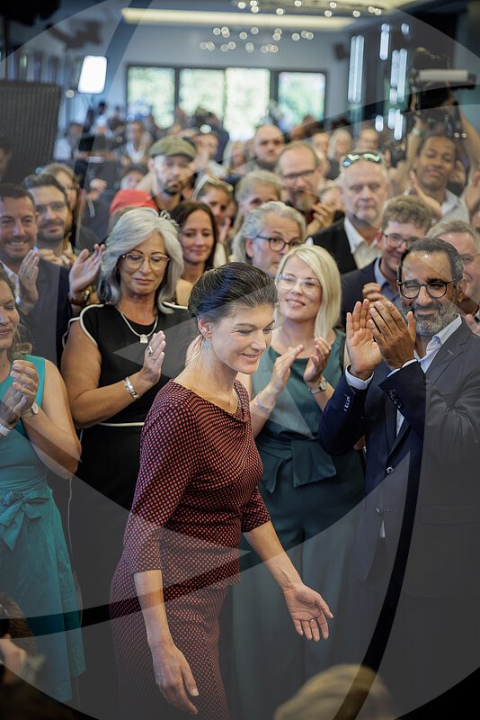 Sahra Wagenknecht kurz nach Bekanntgabe der Wahlergebnisse der Landtagswahl in Thüringen.