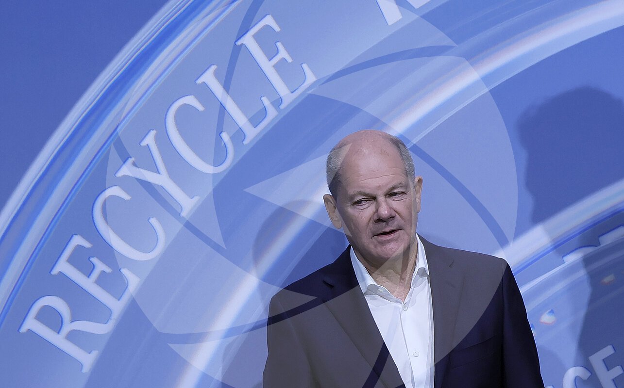 Bundeskanzler Olaf Scholz bei der Eröffnung einer Mercedes-Benz Batterie-Recyclingfabrik in Kuppenheim