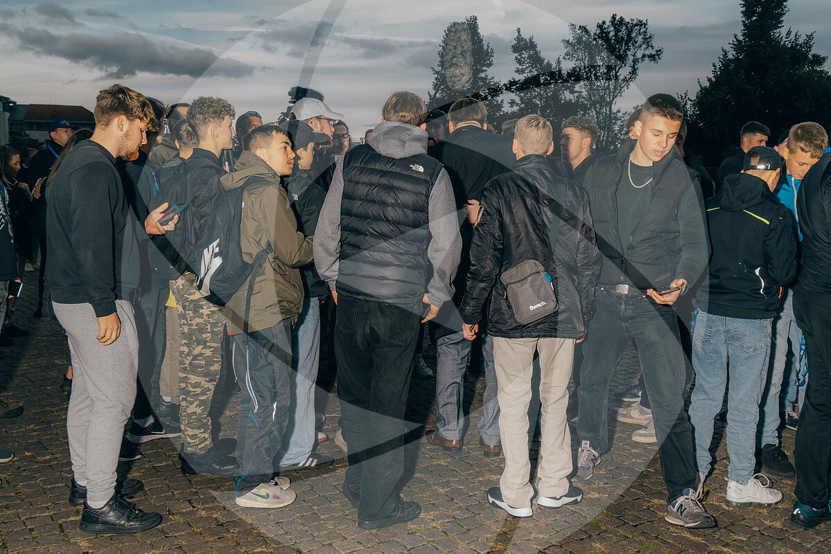 Jugendliche Anhänger*Innen der AfD schauen auf Handys nachdem sie Selfies mit AfD Europapolitiker Maximilian Krah gemacht haben auf der AfD-Kundgebung auf dem Schlossplatz... MEHR